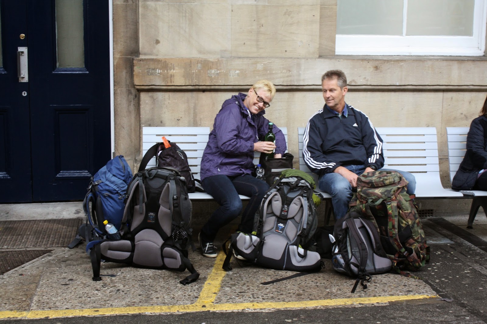 Het regent nu, en niet een klein beetje. Voor het eerst deze reis worden de regenjassen tevoorschijn gehaald. We lopen het centrum in, wat niet onaardig is en doen in de supermarkt op het station boodschapjes. Broodjes en drinken voor het ontbijt. Bier, wijn en chips voor vanavond.