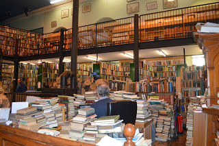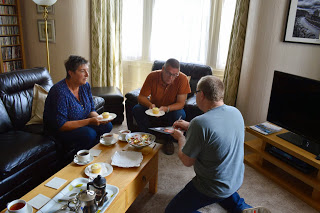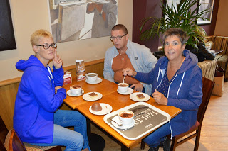 We bezoeken een kasteel dat niet open voor publiek is en stappen een oude kerk is die helemaal is volgestouwd met tweedehands boeken. Zoiets geeft altijd een bijzondere sfeer, het is leuk om gewoon even doorheen te lopen. Onderweg komen we de ‘Whetherspoon’ tegen. Die kennen we andere plaatsen die we bezocht hebben. Smakelijk en goed eten voor een lekker prijsje. Ook hier is het een combi van eten en pub. We besluiten er later te gaan eten, nu gaan we eerst koffiedrinken. Nieuw is dat we nu een koffietent treffen die koffiekopjes formaat soepkom heeft. We doorkruisen daarna nog allerlei straatjes, gaan dan eten in de eerder genoemde zaak en blijven daarna nog gezellig hangen met een biertje en een wijntje. Na een paar uur gaan we terug naar het guesthouse om daar nog even van de gezellige zitkamer te genieten. Wanneer we daar naartoe lopen begint het voor het eerste deze reis te regenen. Gelukkig heeft Theo een paraplu bij zich waar hij met Jos onder duikt en trekken Gerda en ik de capuchons van onze vesten over het hoofd. Goed nat komen we aan, trekken wat droogs aan, zoeken de gezelligheid beneden nog even op en dan zoeken we onze nestjes op. Morgen gaat de wekker om 6.45 uur.
