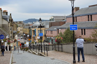 We worden ontvangen in een heel gezellige zitkamer met koffie, thee en zelfgebakken heerlijke cakejes. Dat hebben we nog nooit eerder meegemaakt. Ze nemen de tijd om ons aan de hand van een plattegrond wegwijs te maken in de stad. De bezienswaardigheden, de winkels, de restaurants en de pubs. Inverness zelf heeft niet veel te bieden, vertelt de man, het is vooral heel geschikt als uitvalsbasis voor excursies in de omgeving, zoals het meer van Lochness. Wij gaan dat niet doen, we zijn hier maar korte tijd. Morgenochtend reizen we alweer verder. Het echtpaar wijst ons de smetteloze, knusse slaapkamers waar ook alles is gedaan om de gasten zich direct op hun gemak te laten voelen. Tot aantrekkelijk verpakte koekjes aan toe. jammer dat we hier maar kort van kunnen genieten. Wanneer Theo en ik ons geïnstalleerd hebben, lopen we naar de kamer van Jos en Gerda om die te bekijken. Te laat kom ik erachter dat onze sleutel nog in onze kamer ligt. Dat wordt na nog geen vijf minuten de reservesleutel halen. Net geen recordtijd volgens de eigenaar. We verlaten het pand en trekken het stadje in. Bijzonder vind ik de fietsenworkshop op de hoek. Je kan er je fiets laten, leren maken en tegelijkertijd koffie/theedrinken. Het ziet er heel gezellig uit. Stom dat ik geen foto heb gemaakt.