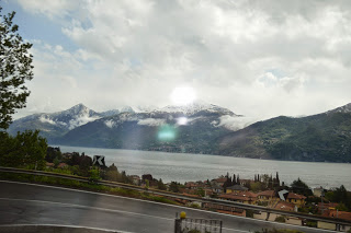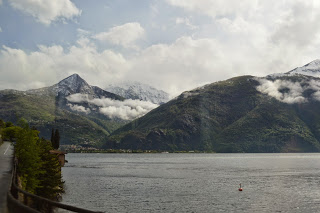 Gisteravond begon het, opeens hoorden we de wind om het hotel gieren. we deden het gordijn opzij en zagen de boomkruinen alle kanten op gaan: weersverandering. Wat een geluk hadden wij met ons dagje Lugano! En een hotelkamer wordt alleen maar knusser met bar weer, dus niks aan de hand.