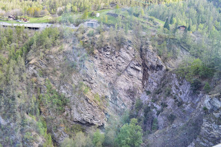 Het laatste uur voor Zermatt bepalen hoge en diepe rotsmassieven het landschap, ook vallen de armoedige bouwsels erg op waar wel of geen mensen in wonen.