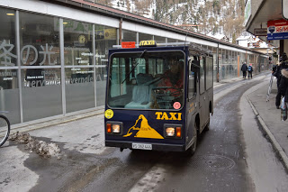 Dan arriveren we in Zermatt. Hoewel we vaag weten dat het een wintersportgebied is, zijn we stomverbaasd. Het is zo druk! Overal wintersporters om ons heen. En ja, sneeuw ligt er ook, hoewel de dooi het tempo van een goed lopende kraan heeft. De skiërs komen van een hoger gelegen gebied met een kabelbaan en keren nu terug voor hotel, eten, borrel of alle drie. Zermatt blijkt een groot toeristenoord te zijn met overal winkeltjes, restaurantjes, kroegjes en hotels.