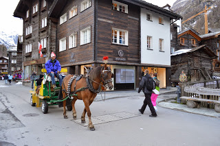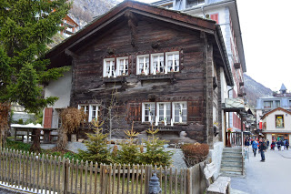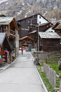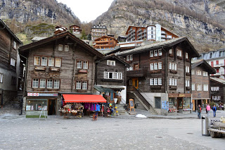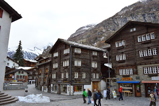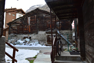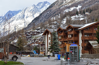 Bloedlink die lui. Nadat we ons in het eenvoudige hotel hebben geïnstalleerd, met uitzicht vanaf onze kamer op de Matterhorn, maken we een wandeling door de stad. En dat is de moeite. Naast de grote aanwezigheid van het toerisme zijn vooral de huisjes van de bevolking de moeite waard. Tenminste we gaan er vanuit dat de in ellendige staat, maar duidelijk bewoonde huisjes van de eigen bevolking zijn. Prachtig om te fotograferen maar diep triest als je er moet wonen. Zo struinen we een tijdje door het stadje, bekijken nog het kerkje voordat met veel klokkengeluid de Paasviering begint en hebben dan een goed beeld van Zermatt. Absoluut de moeite om er een dag te verblijven, maar voor ons veel te toeristisch en te druk om er onze wintersportvakantie te gaan houden. Want die wintersport komt er misschien nog wel….een keer.