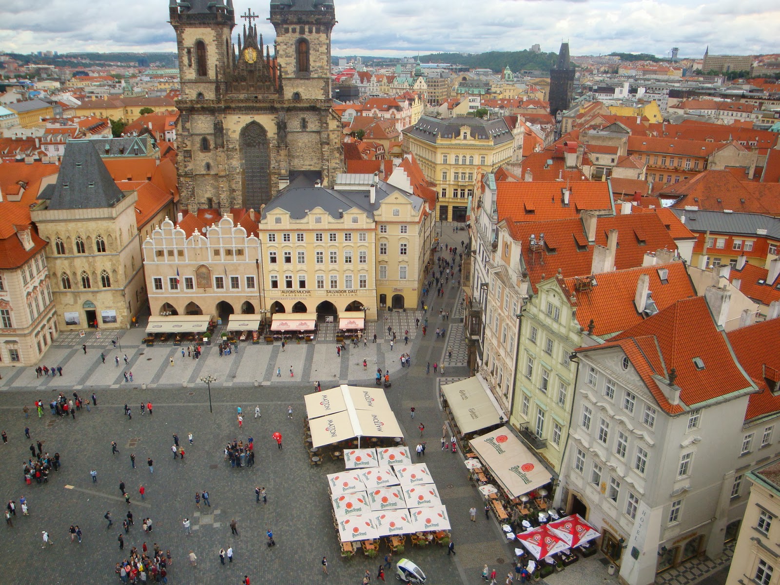 We bezoeken het Staromestske Radnice, een prachtig gebouw met een astronomisch uurwerk dat elk uur een kleine voorstelling laat zien. Dat laatste stelt niet zoveel voor, wel goed voor het toerisme. De beklimming van de toren in het oude Raadhuis is zeer de moeite. We hebben, mede dankzij het mooie weer , een geweldig uitzicht over de stad. Voor de kop koffie daarna doen we een kort onderzoek, de prijzen verschillen namelijk gigantisch: betaal je op het ene terras 95 cze, een paar straten verder kost het 45 cze. We waren al gewaarschuwd.