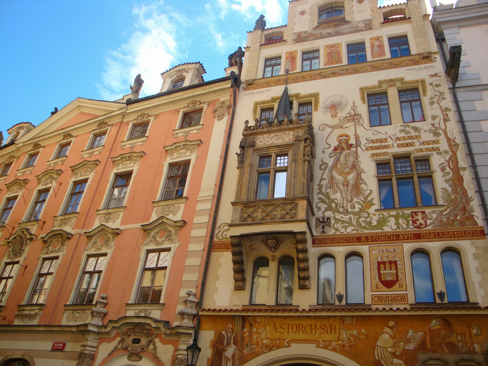 Praag giert van de grote en kleine pleintjes, van steegjes en hofjes. En de toeristen hebben het ontdekt, ook daarvan giert het van. We zien heel wat gidsen die met een plu omhoog een groep nieuwsgierigen een rondleiding geven. Trouwens, als je van kerken houdt zit je in Praag geramd. Het barst ervan. Diverse hebben we vandaag van binnen bekeken, allemaal beslist de moeite van het kijken waard, hoewel vaak protserig. Geloven kost een hoop geld is een gedachte als je al die rijkdom ziet. Ongelooflijk.