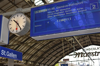 We kunnen rustig ontbijten en de spullen pakken om de trein van 10.50 uur vanaf het St. Gallen centraal station te pakken. Het wordt een treinreis van ca. 3.5 uur.
