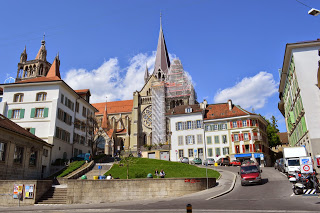 Het is druk, bedrijvig en overal zijn wel terrasjes. Toch, het valt ons tegen, het is niet zo mooi als we hadden gehoopt, we vinden het geheel ‘rommelig’ hoewel dat niet helemaal het goede woord is. Sfeervol kunnen we het niet noemen, sommige stukjes ja, maar te weinig om het aantrekkelijk te noemen. We bezoeken de Kathedraal die de grootste van Zwitserland moet zijn, de Notre Dame. We zijn verbaasd en durven ons af te vragen of ze zich misschien hebben vergist..De mooiste is het zeker niet en binnen is er weinig bijzonders te zien.