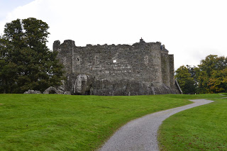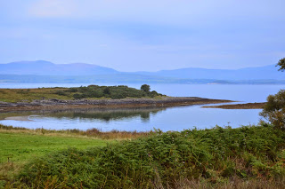 Vandaag is het plan om een fikse wandeling naar Dunstaffnage Castle te maken, een afstand van 6 mile. Helaas voelt Jos zich niet lekker, de hotelkamer, vooral de wc, heeft zijn voorkeur. Dus gaan wij met z’n drieen op pad. Gisteren vertelde een autochtone vrouw al dat het prachtige weer uniek is voor september. Vandaag gaat dat gewoon door: de temperatuur is heerlijk, het zonnetje laat zich regelmatig zien. In het VVV, dat naast het hotel gevestigd is, laten we ons de route vertellen waarna we op pad gaan. We lopen langs het water, een strandje, een stukje langs een weg en klimmen een stuk over een heuvel, door groen en bebost gebied. Het is een prettige afwisseling met genoeg uitzichten om van te genieten. Een paar keer vragen we de weg omdat we twijfelen over de route. We gaan goed, maar volgens een postbode kan het korter en hij wijst ons de snellere route. We lopen door een dorpje met kleine, oude huisjes waarvan de bewoners bijna nergens te zien zijn. Na ruim anderhalf uur komen we bij het kasteel en het Maritime Science Center, waarin, niet onbelangrijk, een koffiegelegenheid. We laven ons met koffie, soep en broodjes en gaan daarna verzadigd op weg naar de ruïne. Een rondleding is mogelijk, maar doen we niet. We lopen om het kasteel heen, genieten van de uitzichten over zee en het besef over historisch rijke grond te lopen. In de buurt van het kasteel is een kapel, ook een ruïne die zeer de moeite blijkt. Er zijn oude en redelijk nieuwe graven van de familie Campbell. Ook zijn er herdenkingsstenen in de diverse restanten van muren gemetseld. De laatste in de jaren negentig. Intrigerend, op zo’ n oude plek. Na dit bezoek wandelen we de hele route weer terug. Onderweg pauzeren we nog op een bankje met uitzicht over zee. Na ruim vijf uur zijn we terug bij het hotel en zijn we het er over eens dat het een geslaagde tocht was. We hebben de ‘ plaatjes’ gezien zoals die ook in boekjes over Schotland afgebeeld zijn en weten dat het de komende dagen waarschijnlijk nog mooier gaat worden. Terug in het hotel blijkt het met Jos gelukkig al wat beter te gaan. De uurtjes daarna nemen we onze tijd, rust en verfrissingsmogelijkheid en verzamelen ons begin van de avond om in het hotel te gaan eten. Ze heben een kaart met duidelijk vegetarische gerechten. lekker, en we kiezen er vandaag allevier voor. Na het eten maken we een korte wandeling en eindigen in de pub van het hotel. Nog een uurtje gezelligheid en dan nokken we af. Op de hotelkamer kijken we even naar de districtsuitslagen van het referendum. Het krijgt nu beslist meer onze aandacht dan wanneer we thuis waren geweest. Morgen is de definitieve uitslag, we zijn benieuwd!