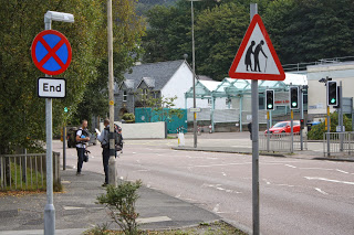 In Fort William zijn we niet onder de indruk van het stadje. Het heeft niet een aansprekende sfeer. En dat komt ook niet echt, hoewel dat niets zegt over ons vermaak. Lopend naar het guesthouse ‘Guisachan’komen we op een druk verkeerspunt een bijzonder verkeersbord tegen. Er staan twee wat kromme ouderen op, een man met een stok en een vrouw. Het is een speciale oversteekplaats voor oudere mensen.