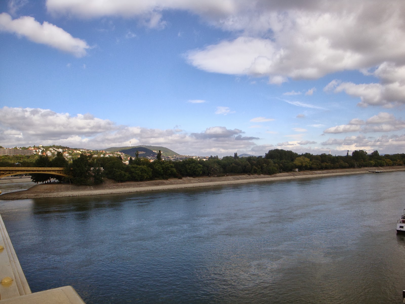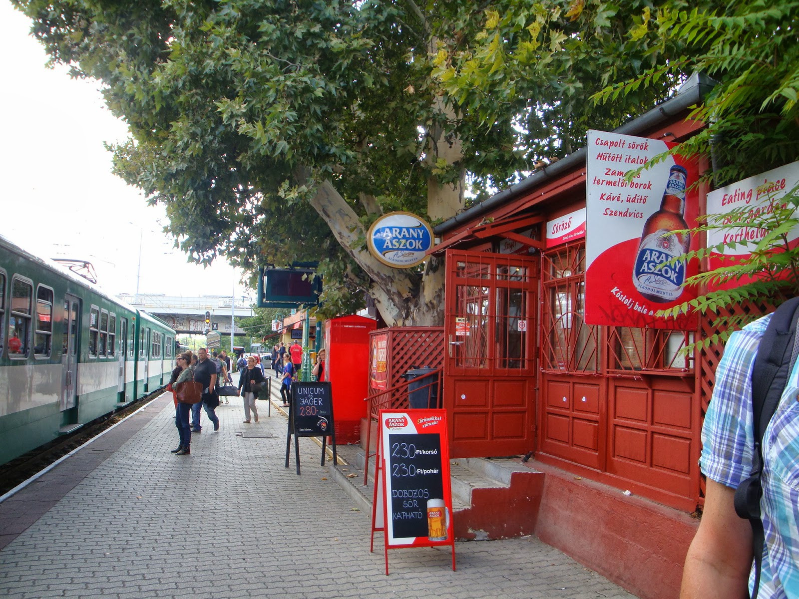 Dit eiland van 3 km. lang, ligt in de Donau, precies tussen Pest en Buda in. Vernoemd naar Margaretha, de dochter van een voormalige Hongaarse koning, die op het eiland in een klooster zat. Een mooi eiland, veel groen, veel sporters, recreatiemogelijkheden, meertjes en een ‘ dansende’ fontein. Met veel plezier lopen we de 3 km. naar het andere eind en steken daar via een andere brug over naar Buda. Daar bezoeken we het oude stadsdeel Obuda. Klein, maar sfeervol. Dat lijken bruidsparen ook te denken, want binnen een kwartier zien we er drie. Vervolgens gaan we naar het nabijgelegen station. Bizar, het heeft twee perrons maar op het eerste staat een kleine kroeg. Door de openstaande deur kan ik zien dat de mannen het erg naar de zin hebben. Een foto maken durf ik niet, wel van de buitenkant. Mijn lef en brutaliteit is aan grenzen gebonden.