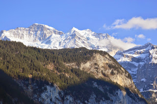 Voor het verlaten van de hotelkamer kijken we nog even door het raam naar de Jungfrau, hebben wij daar echt gisteren hoog op die top een paar uur gewandeld?