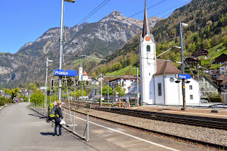 In Flüelen moeten we een kwartier op de trein wachten en dat is beslist geen straf, in het zonnetje op het seervolle stationnetje.
