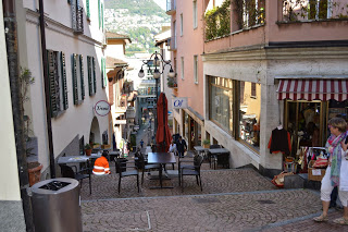 Met de trein die komt reizen we naar Bellinzona, inderdaad, een Italiaanse naam. Want ergens onderweg, valt het Duits weer weg en is het alles Italiaans wat de klok slaat. Opeens hebben we alleen maar Italianen om ons heen en nergens is meer een Duits woord te zien of te horen. We rijden nu in het Zwitserse kanton Ticino dat Italiaans sprekend is. In Bellinzona stappen we voor het laatste stukje over naar Lugano. De huizen zijn nu allemaal van steen, geen Zwitserse houten chalets meer, de sfeer is anders, zuidelijker.