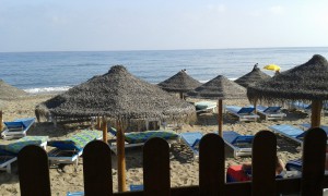 Op ons gemak installeren we ons en gaan dan nog met z’n vieren een wandeling langs het strand maken. Het is geen vol en druk strand met hutje, mutje bedjes op elkaar. La Cala de Mijas is duidelijk het kleine broertje of zusje van uitgesproken badplaatsen als Marbella en Tormelinos.